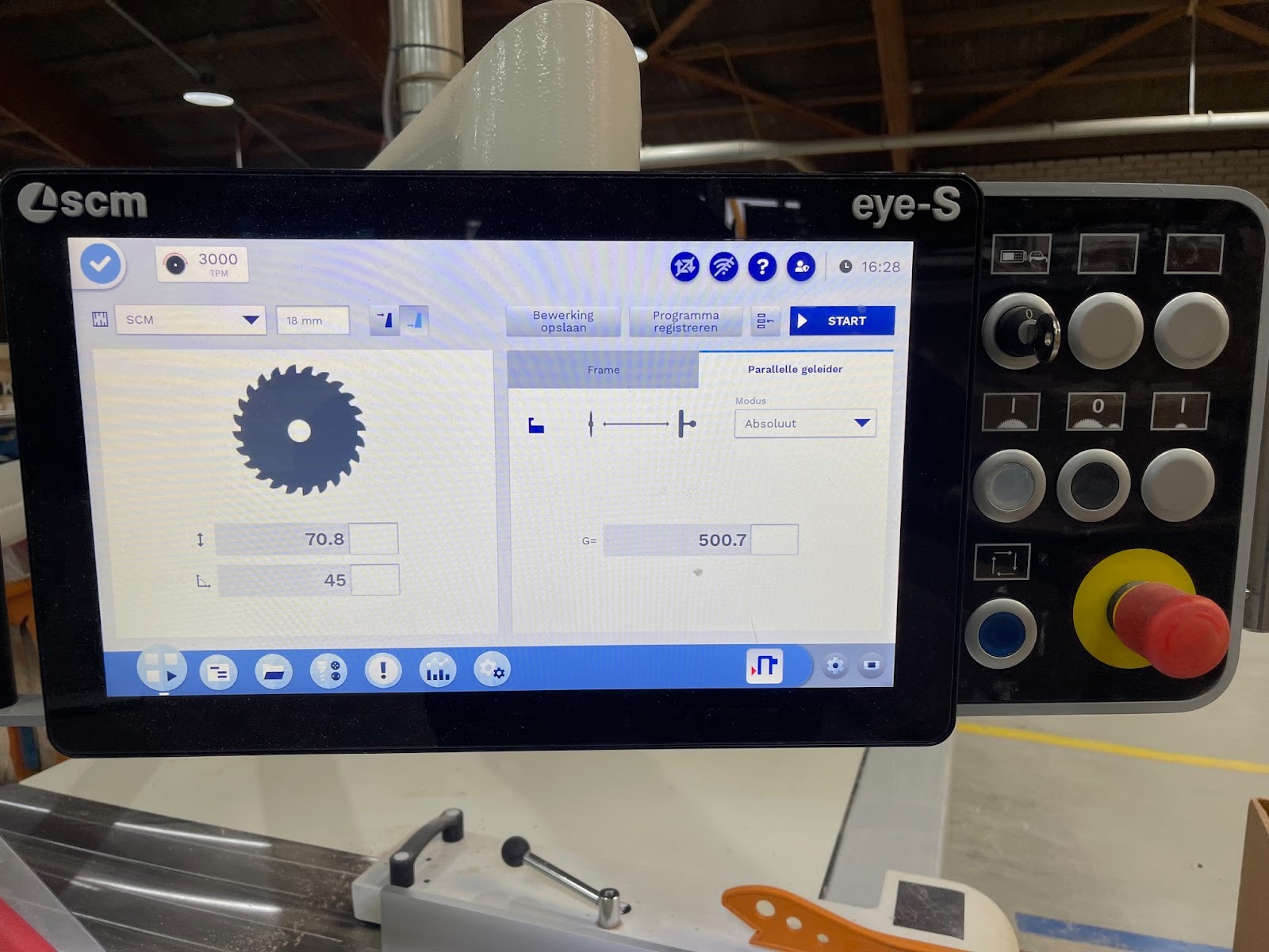 Dankzij het gepatenteerde AP-systeem van SCM positioneert de zaagkap automatisch mee met de stand van het zaagblad. Hierdoor gebeurt het werk veilig, zonder dat het de efficiëntie vermindert.